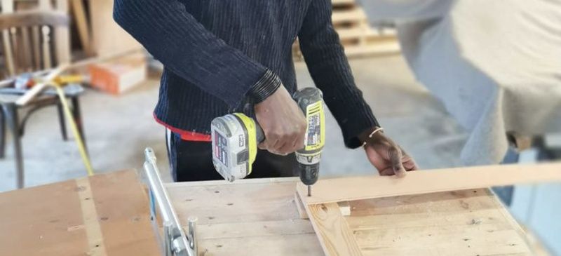 Activité traditionnelle des communautés, la menuiserie est tout à la fois un lieu de réparation et de création de mobilier.